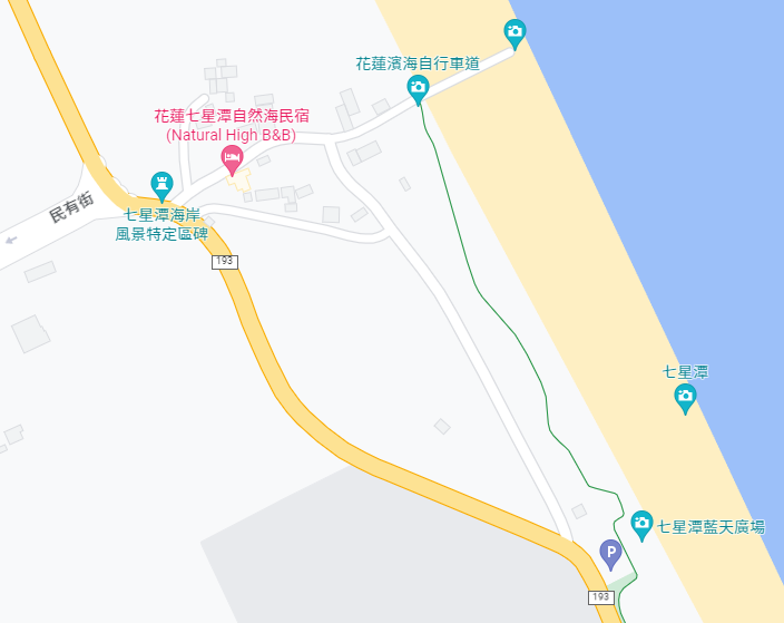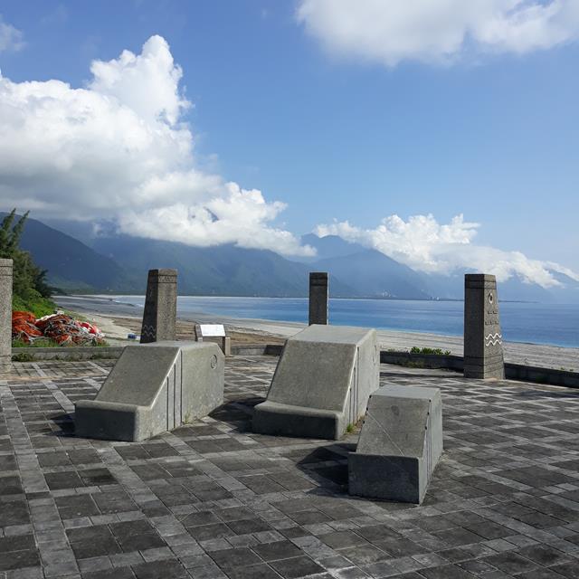 七星潭濱海自行車道地圖,來到北端就是七星亭觀海平台跟曼波魚石像。