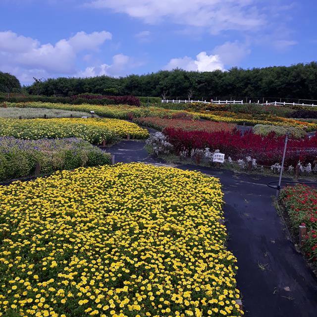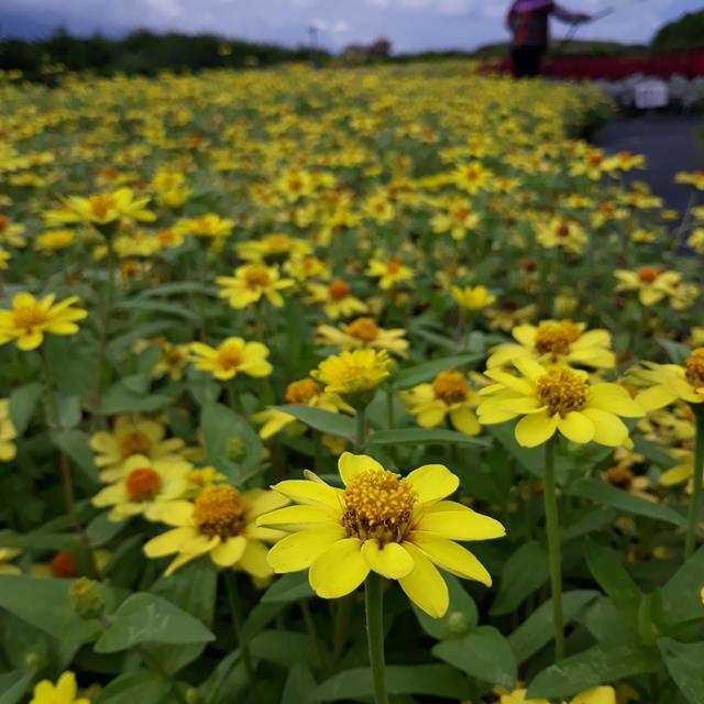曼波花園中盛開的整片黃色花海。