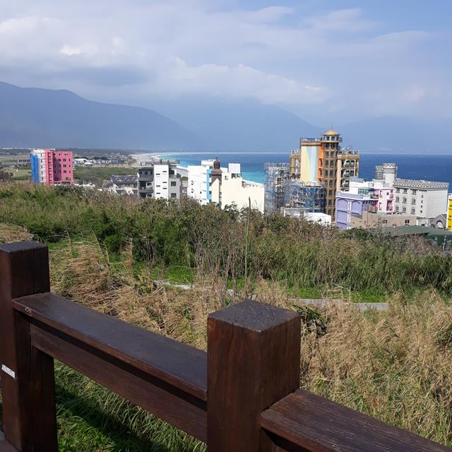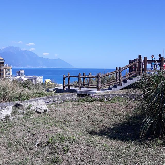 曼波園區的觀景台,沿著階梯小路往下步行可直接抵達七星潭遊客中心。