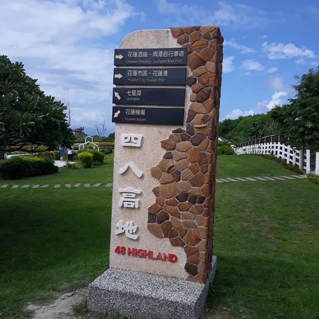 標註四八高地路牌的石柱。