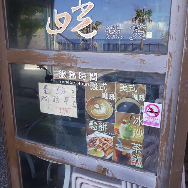 除了租車外,店家也有提供室外觀海的座位區可以小憩,以及冰淇淋 (30元) 和瓶裝水(15元) 可以選購。