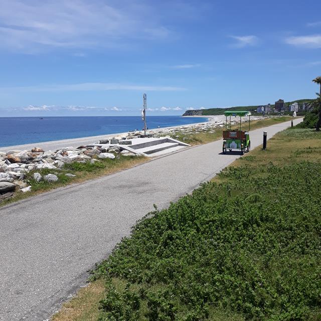 遊客中心北邊的七星潭自行車出租,種類和數量都較多,有電動自行車、遮陽擋雨車、親子協力車、淑女車、孩童車和越野車。
